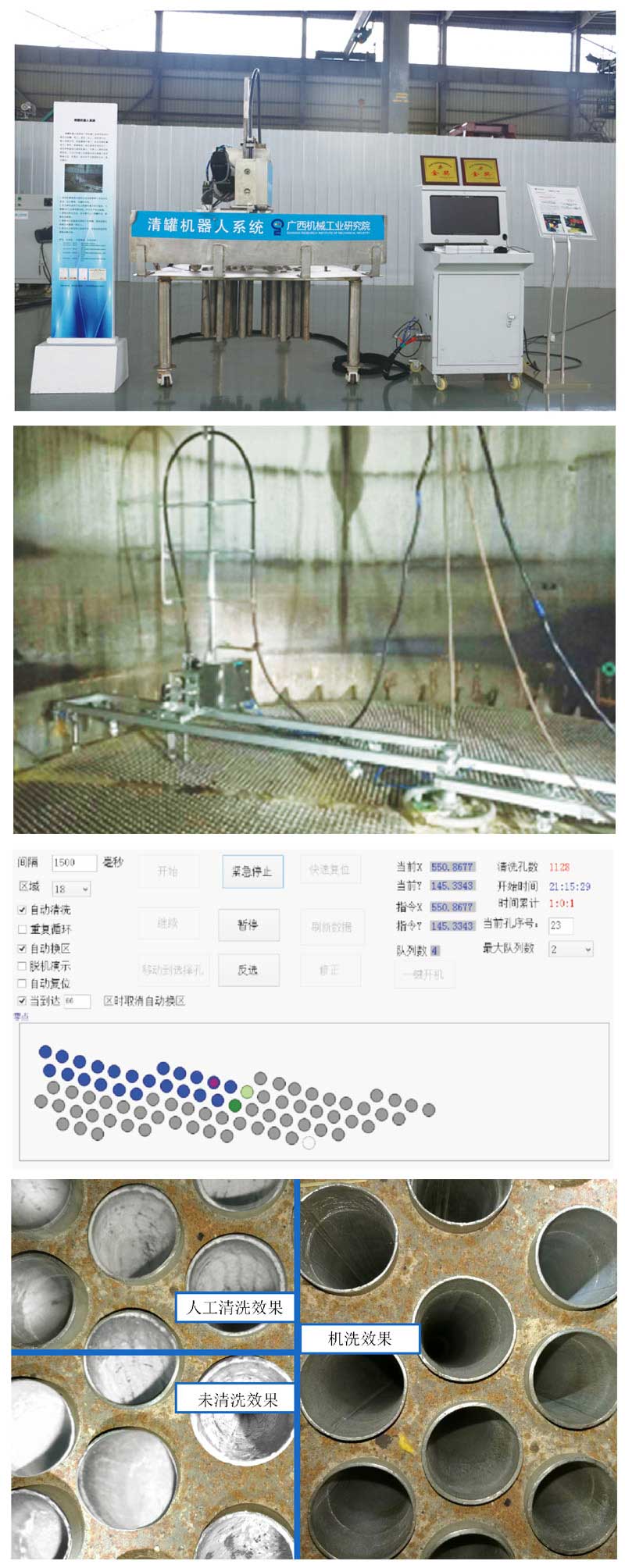 我院與廣西上上糖業有限公司合作開發的全自動高壓清洗機器人系統,面向國內外制糖、輕工、食品、化工、制藥等行業,在狹小受限空間、高溫潮濕環境下,代替人工清洗加熱管積垢,屬世界首創,達到代替傳統人工作業方式、減少人員傷亡、提高安全生產率和提升清洗質量的目的。