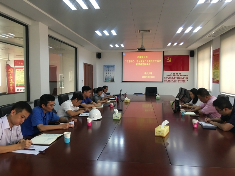 8月31日,機械院公司黨委書記王吉才到柳州大錳召開“不忘初心、牢記使命”專題民主生活會征求意見座談會,會議由機械院公司綜合部部長王詠梅主持,機械院公司主任工程師張美義、柳州大錳領導班子成員參加會議。
