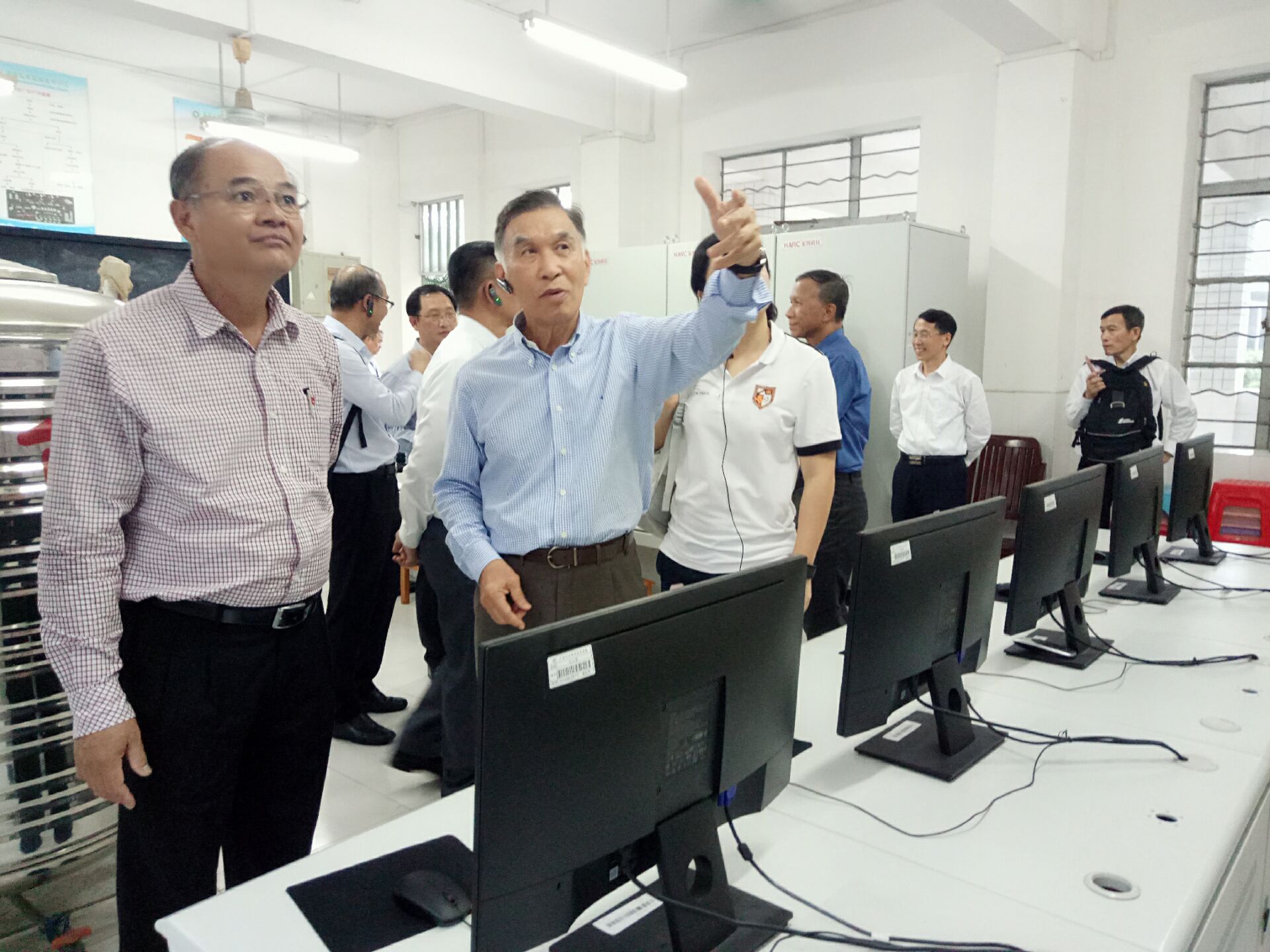 2018年7月24日泰國國家立法議會商業、工業與勞工委員會代表團訪問了我院校企合作單位廣西工業職業技術學院,代表團主要成員有泰國國會議員刑瑟.刑佩先生,泰國兩儀糖業集團董事長汪東財先生及廣西東亞糖業集團總裁林家樂先生。我院與廣西工業職業技術學院共同開展了代表團的接待活動,向代表團展示了雙方合作的智能制造教學系統應用案例和取得的校企合作成果。我院黃衛華副院長全程參與了此次活動。