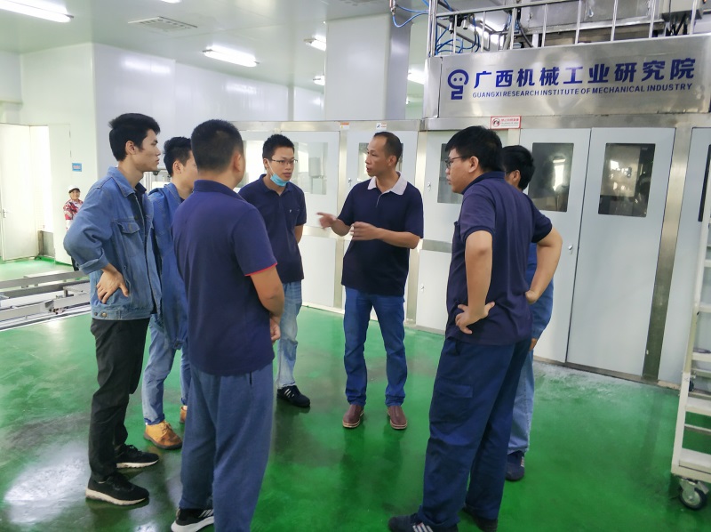 不斷創新,勇于突破是一個科研單位矢志不渝的追求。2018年7月,我院對自主研發的套裝式內外袋物料包裝全自動生產線進行了為期1個月的技術改進,8月圓滿完成技術改進與調試任務,8月29日正式投入糖廠開榨使用。