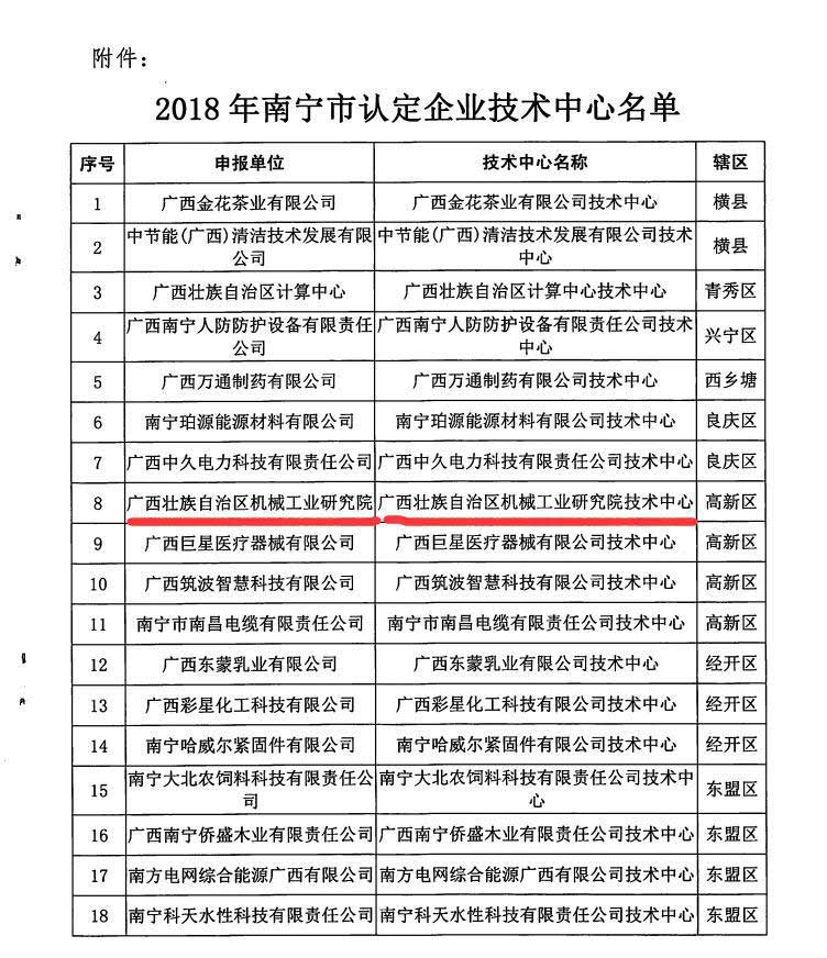近日,南寧市工業(yè)和信息化委員會(huì)公布了2018年南寧市企業(yè)技術(shù)中心名單(南工信科技〔2018〕15號(hào)),我院登榜其中,喜迎2019年開(kāi)門(mén)紅。