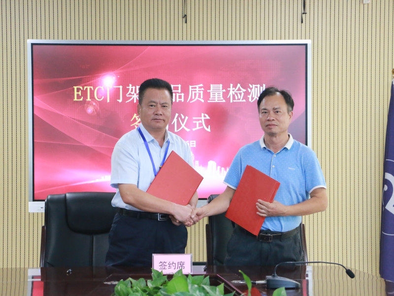 為確保ETC門架生產、安裝質量,在安裝量完成60%之際,機械院公司于9月6日與廣西通用機械產品質量檢測站簽訂委托檢測協議,全面啟動ETC門架質檢工作,機械院公司董事長王吉才、檢測站副站長黎順平分別代表雙方單位簽約。