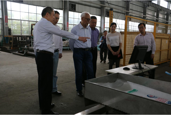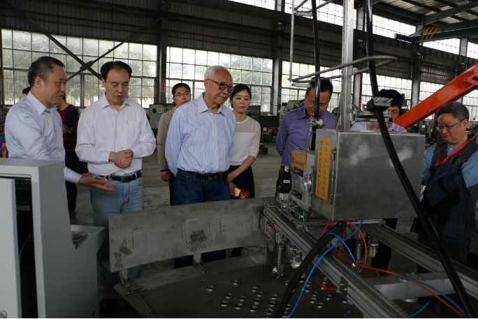 ▲段正澄院士參觀指導公司自主研發的全自動包裝碼垛機器人生產線