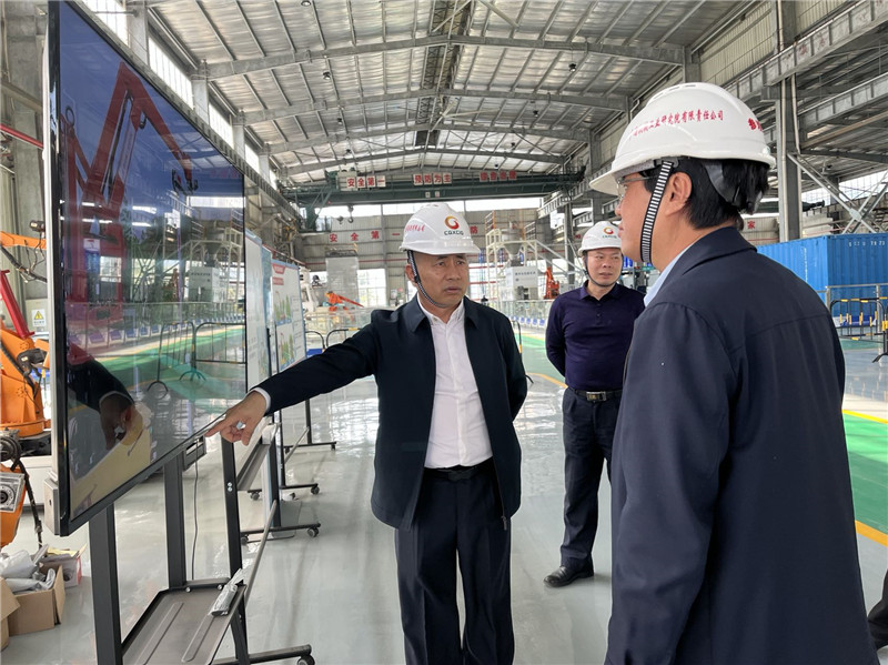 白雷部長參觀公司展廳,到智能制造車間檢查指導安全生產工作,了解機械院自主研發的智慧電箱、綠籬修剪機器人、全自動錐桶擺放機器人等產品
