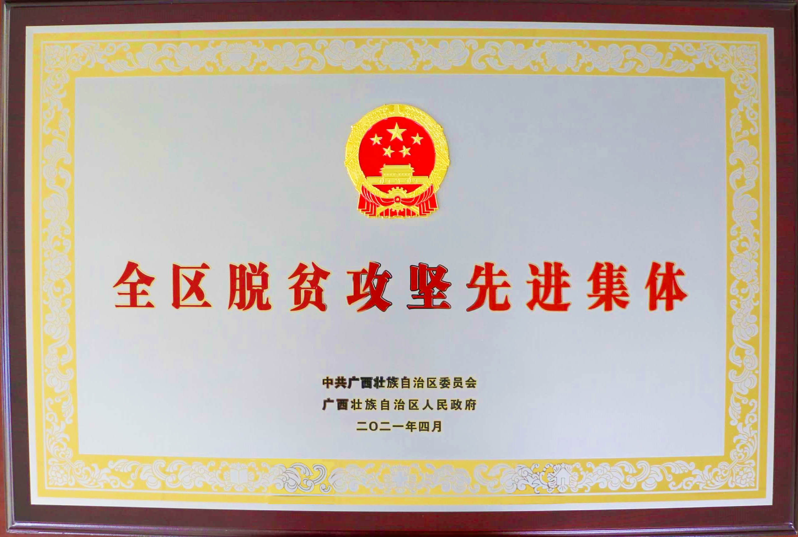 2021年5月7日,全區脫貧攻堅總結表彰大會召開,會議表彰了一批脫貧攻堅先進集體、先進個人,廣西機械工業研究院有限責任公司榮獲自治區黨委、自治區政府授予的“全區脫貧攻堅先進集體”榮譽稱號。
